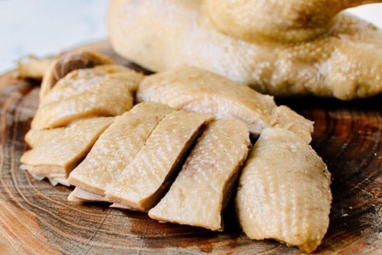 Sau khoảng 25 – 30 phút, bạn tiến hành kiểm tra vịt đã chín hay chưa bằng cách dùng đũa xăm thử vào da vịt, nếu thấy vịt không chảy ra nước màu đỏ là vịt đã chín, vớt vịt ra ngâm vào thau nước đá lạnh vài phút cho vịt trắng đẹp và có lớp da giòn. Sau đó vớt vịt ra ngoài, để ráo.