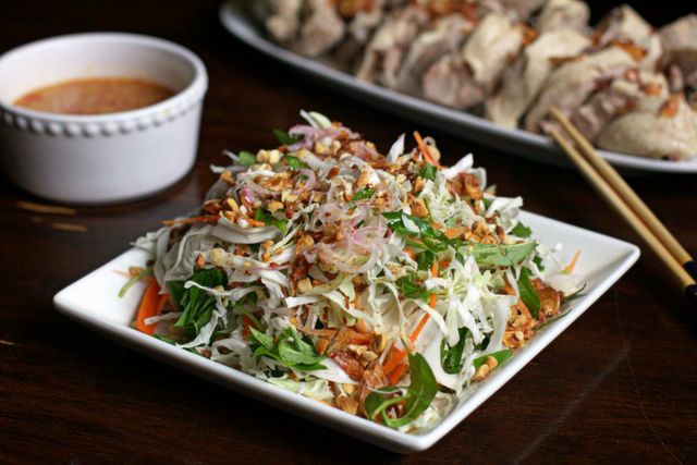 Thịt vịt sau khi để nguội bạn chặt miếng nhỏ vừa ăn, xếp vào đĩa một cách đẹp mắt. Thịt vịt sẽ được dọn ăn cùng với cháo và các loại rau thơm
