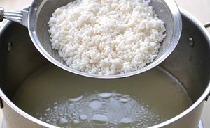 Gạo nếp vo sạch rồi ngâm trong khoảng 1h cho nở, sau đó vớt ra để giáo nước.