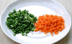 Cà rốt gọt bỏ vỏ, rửa sạch rồi thái nhỏ hạt lựu.