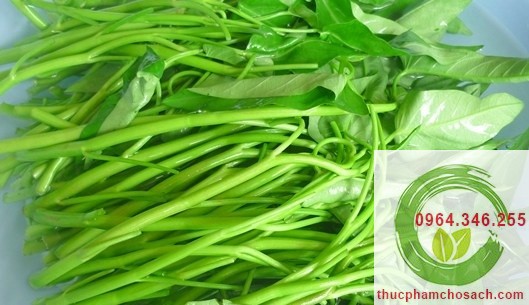 - Bước 1 : Rau muống nhặt thành khúc khoảng 10 cm ,có thể nhặt bớt lá tùy ý , rửa sạch và để ráo nước.