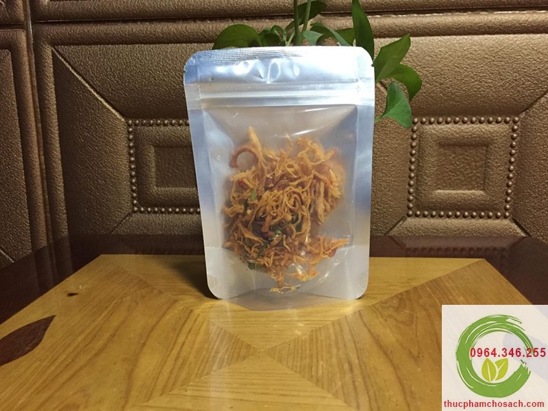 Hiện tại Thực phẩm chợ sạch đang cung cấp sản phẩm Khô gà lá chanh.Sản phẩm đã có giấy chứng nhận AN TOÀN THỰC PHẨM Số 02/2017/NNPTNT-ATTP do Bộ Nông nghiệp và phát triển nông thôn cấp vào tháng 02/2017.Khô gà lá chanh được chế biến từ 100% thịt gà sạch, đảm bảo vệ sinh.Thành phần chính trong mỗi sản phẩm là thịt gà chiến trên 90 % , còn lại là đường , mì chính , hạt nêm , muối , nước mắm, ớt và lá chanh.Do sản phẩm của chúng tôi được đóng gói và hút chân không rất cẩn thận nên có thể bảo quản trong 5 tháng kể từ ngày sản xuất.